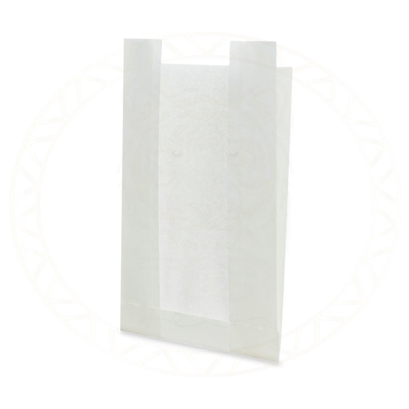 - Крафт пакеты белого цвета, размер 140*60*250 мм, с прозрачным окном и V-образным дном