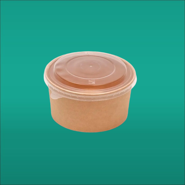 Круглый боул из крафт-картона с плотной прозрачной крышкой — универсальная упаковка для горячих и холодных блюд. Подходит для салатов, гарниров, мясных и рыбных блюд, лапши, десертов и доставки еды на вынос.