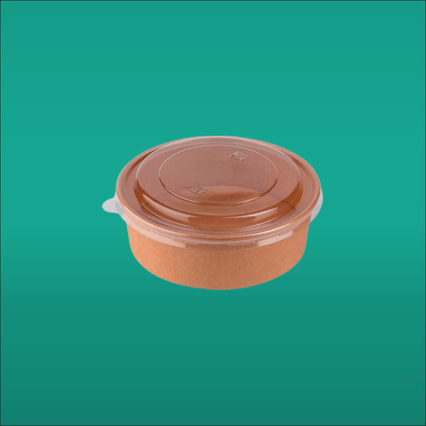Круглый боул из крафт-картона с плотной прозрачной крышкой — универсальная упаковка для горячих и холодных блюд. Подходит для салатов, гарниров, мясных и рыбных блюд, лапши, десертов и доставки еды на вынос.