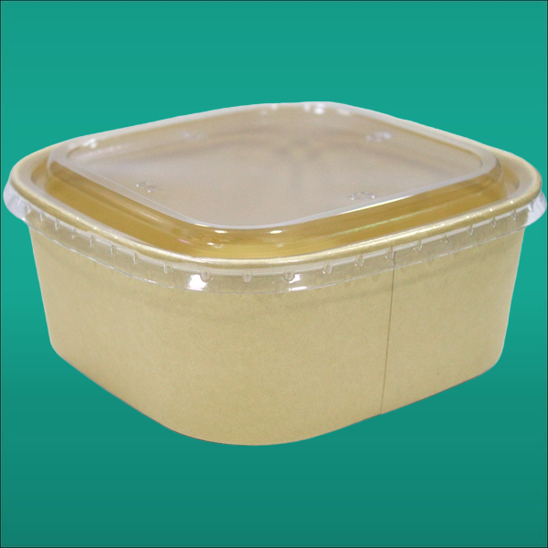 Квадратный бумажный боул с прозрачной крышкой