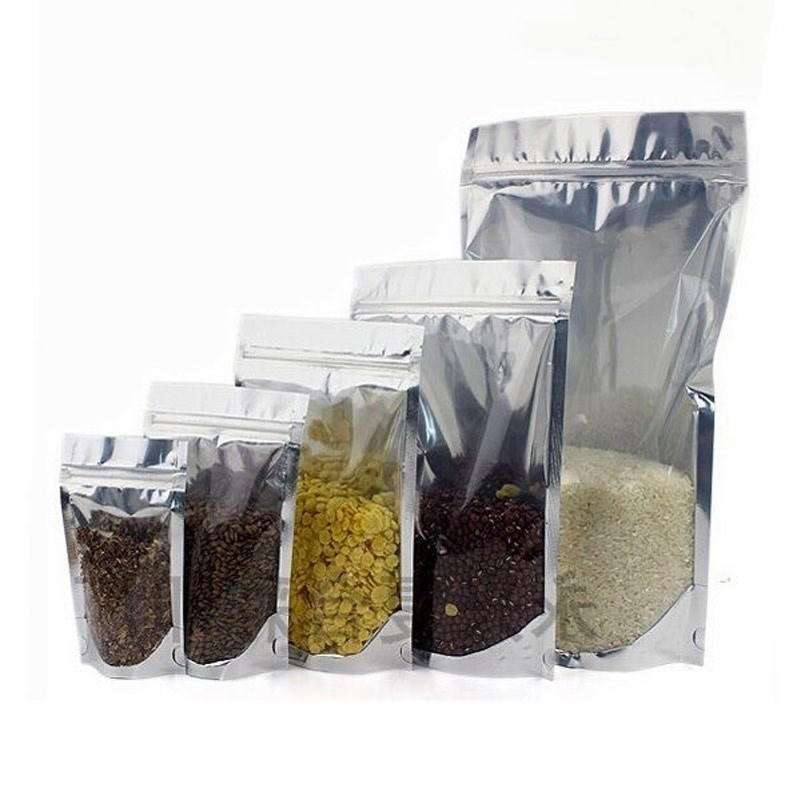(ОТ 500шт) Пакет дой-пак СЕРЕБРО зип-лок 210*350мм с прозрачной стороной